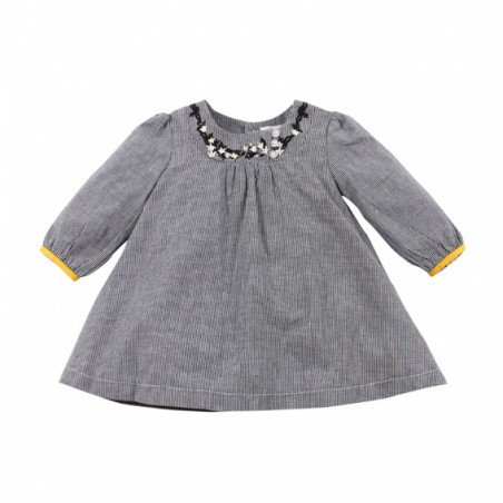 Adorable black/white fine check 100% Cotton dress featuring sweet embroidery on yoke.
